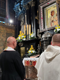 Po części integracyjnej, która już od lat odbywa się w Auli Augustyna Kordeckiego, pielgrzymi przeszli do kaplicy Cudownego Obrazu Matki Bożej na wspólną modlitwę, którą prowadzili nowicjusze i klerycy chrystusowcy, siostry misjonarki, przedstawiciele naszych wspólnot parafialnych z kraju i zagranicy. Z nadzieją i ufnością zwróciliśmy się do Matki o twarzy, jak polska ziemia czarnej, o twarzy jak polska ziemia znaczonej bliznami, wołając: