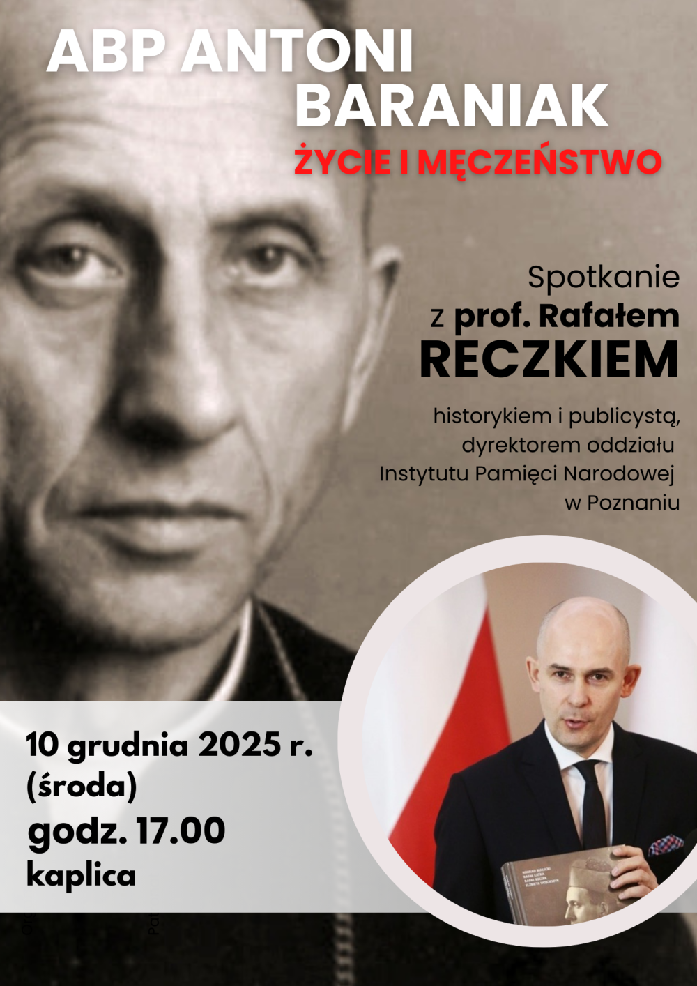 10 grudnia 2025 roku w Domu Seniora w Puszczykowie odbyło się spotkanie z prof. Rafałem Reczkiem – historykiem, badaczem dziejów najnowszych, wieloletnim pracownikiem Instytutu Pamięci Narodowej (obecnie dyrektorem poznańskiego oddziału IPN) oraz wykładowcą akademickim (UAM). Profesor Reczek, którego praca naukowa koncentruje się na historii Polski XX wieku, relacjach państwo–Kościół oraz pamięci historycznej, jest współautorem ilustrowanej biografii arcybiskupa Antoniego Baraniaka wydanej przez IPN. Publikacja ta znacząco przyczyniła się do przywrócenia pamięci o jego heroicznym świadectwie.