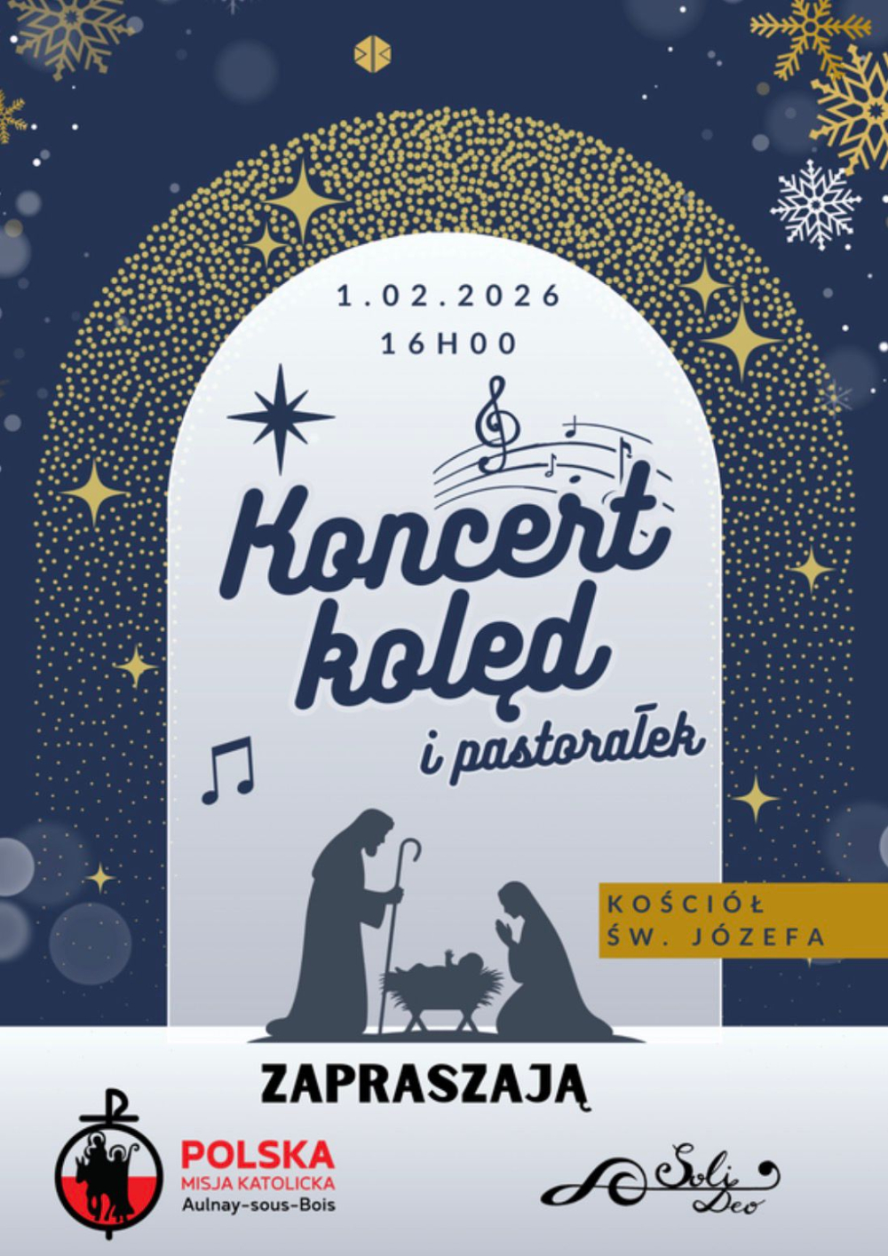 W niedzielne popołudnie 1 lutego 2026 r. tuż po Mszy Świętej w kościele Świętego Józefa w Aulnay sous Bois rozbrzmiały dźwięki kolęd i pastorałek. Ów Koncert Kolęd zgromadził licznych parafian oraz gości, którzy szczelnie wypełnili świątynię, by wspólnie przeżyć czas modlitwy, wzruszeń i muzycznej radości. Przybyli nań również europoseł Tomasz Buczek oraz przedstawiciele władz miasta Aulnay z panem Paulem Marquesem, zastępcą mera miasta Aulnay na czele.