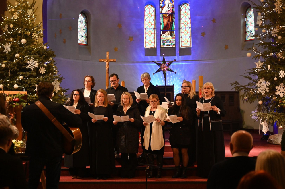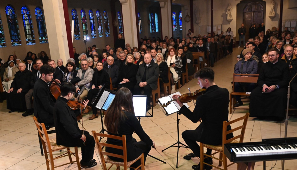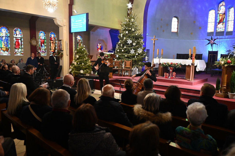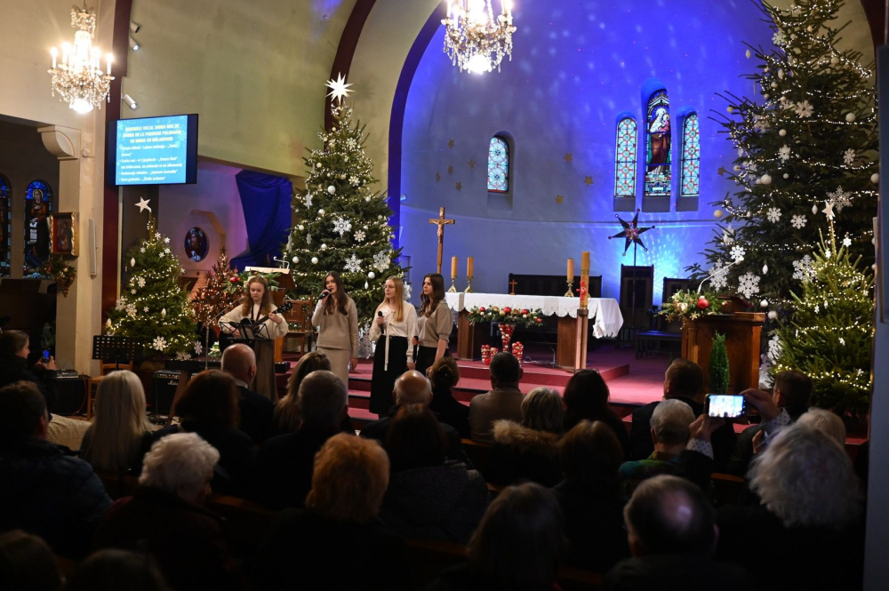 Koncert rozpoczął się o godzinie 16.00, a jego atmosfera od pierwszych chwil niosła światło, pokój i wdzięczność za dar Bożego Narodzenia. Publiczność miała okazję wysłuchać różnorodnych interpretacji – od subtelnych brzmień smyczków po pełne mocy wykonania chóralne. Na scenie zaprezentowali się: Duo Guignier, które wprowadziło słuchaczy w nastrój skupienia i harmonii, schola uwielbieniowa z parafii Świętej Rodziny w Aulnay sous Bois, chór „Piast” z Paryża, „ORATORIO” z Polskiej Parafii Wniebowzięcia NMP przy paryskim placu Concorde, schola młodzieżowa „Anima una” z parafii św. Jana Ewangelisty z Mińska (Białoruś), kwartet smyczkowy w składzie: Mathieu Guignier i Paulina Żądło (skrzypce), Yi-Yun Chang (altówka), Gabriel Guignier (wiolonczela), chór „Soli Deo” z parafii Świętej Rodziny w Aulnay-sous-Bois. Wspólne wykonanie kolędy „Jezusa narodzonego”, którą zaśpiewali wszyscy artyści pod dyrygenturą Bogdana Żądło było momentem kulminacyjnym i zwieńczeniem tej swoistej duchowej uczty.