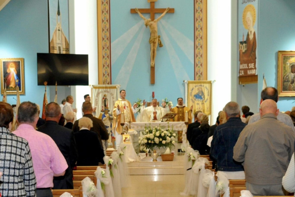 Na nasze parafialne święto przybyli ks. Hubert Zasada SChr, przełożony północnoamerykańskiej prowincji chrystusowców oraz ks. Adam Słomiński SChr, ekonom prowincji, którzy przewodzili liturgii. Cieszymy się, że nasza parafia w roku 15 rocznicy beatyfikacji Kapelana Solidarności dostąpiła zaszczytu otrzymania Relikwii Krwi polskiego błogosławionego męczennika. Było to prawdziwie wydarzenie, które niosło umocnienie wiernym zjednoczonym na modlitwie, którzy mogli pod zwyczajnymi warunkami uzyskać łaskę odpustu.