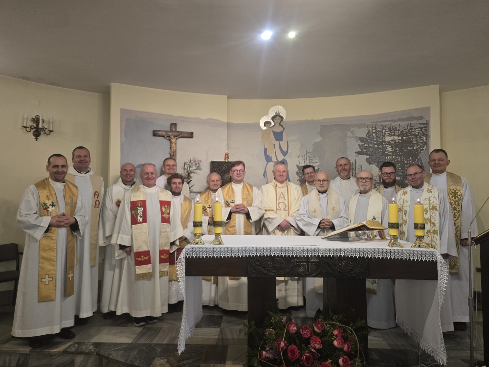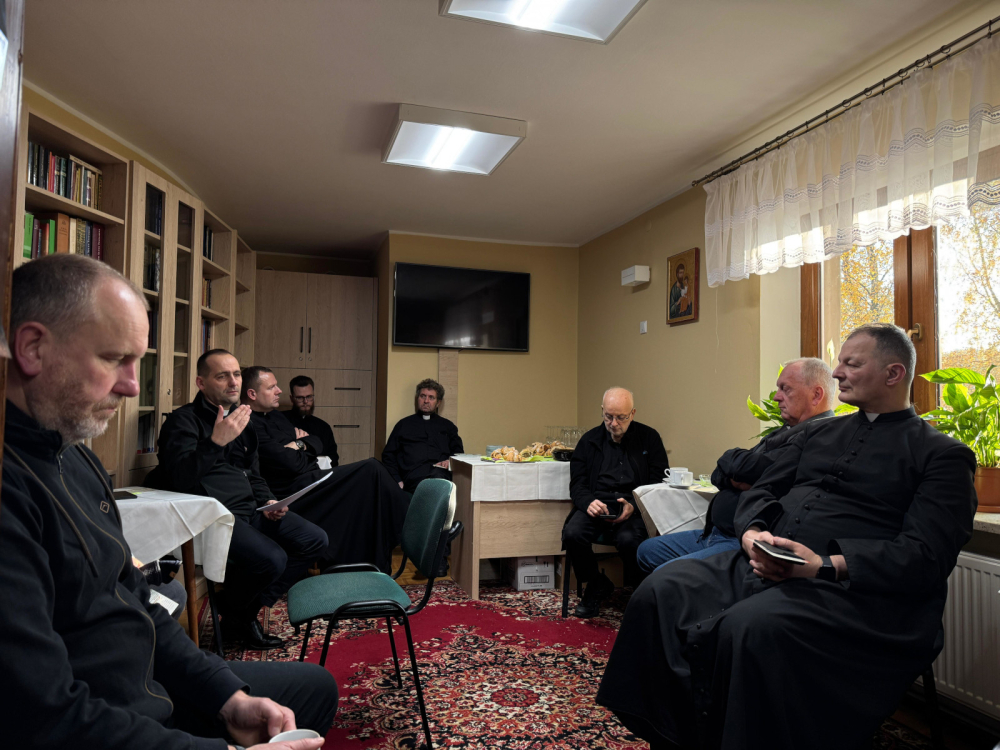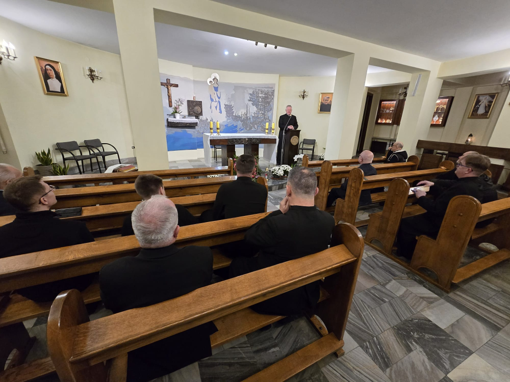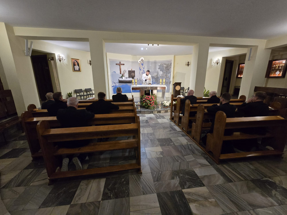 Temu czasowi refleksji i skupienia towarzyszyły konferencje i homilia ks. kan. Mateusza Misiaka, proboszcza Parafii Farnej w Poznaniu i prepozyta Kapituły Kolegiackiej Poznańskiej. W swoich rozważaniach przypominał nauczanie zmarłego wiosną 2025 r. papieża Franciszka oraz skupił się na różnych aspektach duchowości, tożsamości i posługi kapłańskiej. Podkreślał jak ważnym i potrzebnym są osobiste nawrócenie, przemiana kapłana czy miłość do Chrystusa, jak i do powierzonego pasterskiej pieczy Ludu Bożego. Szczególnie papieskie nauczanie wybrzmiewało, gdy Prowadzący przedstawiał zagadnienie czterech bliskości kapłana – z Bogiem, który wzywa i prowadzi na drogach powołania i ku świętości, z biskupem bądź zakonnym przełożonym, z prezbiterium czyli z innymi kapłanami oraz ze swoim ludem, tj. z tymi, do których jest się posłanym. Nie zabrakło też, zwłaszcza w wygłoszonej podczas konwentualnej Mszy Świętej, kwestii związanych z modlitwą kapłana i życiem sakramentalnym, korzystaniem i celebrowaniem Eucharystii i sakramentu pokuty i pojednania pozwalających na nieustannie pozostawianie tego, co światowe i wspinanie się na wyżyny świętości, jak w początkach zgromadzenia plastycznie kreślił te perspektywy przed młodymi zakonnikami Kardynał Założyciel.