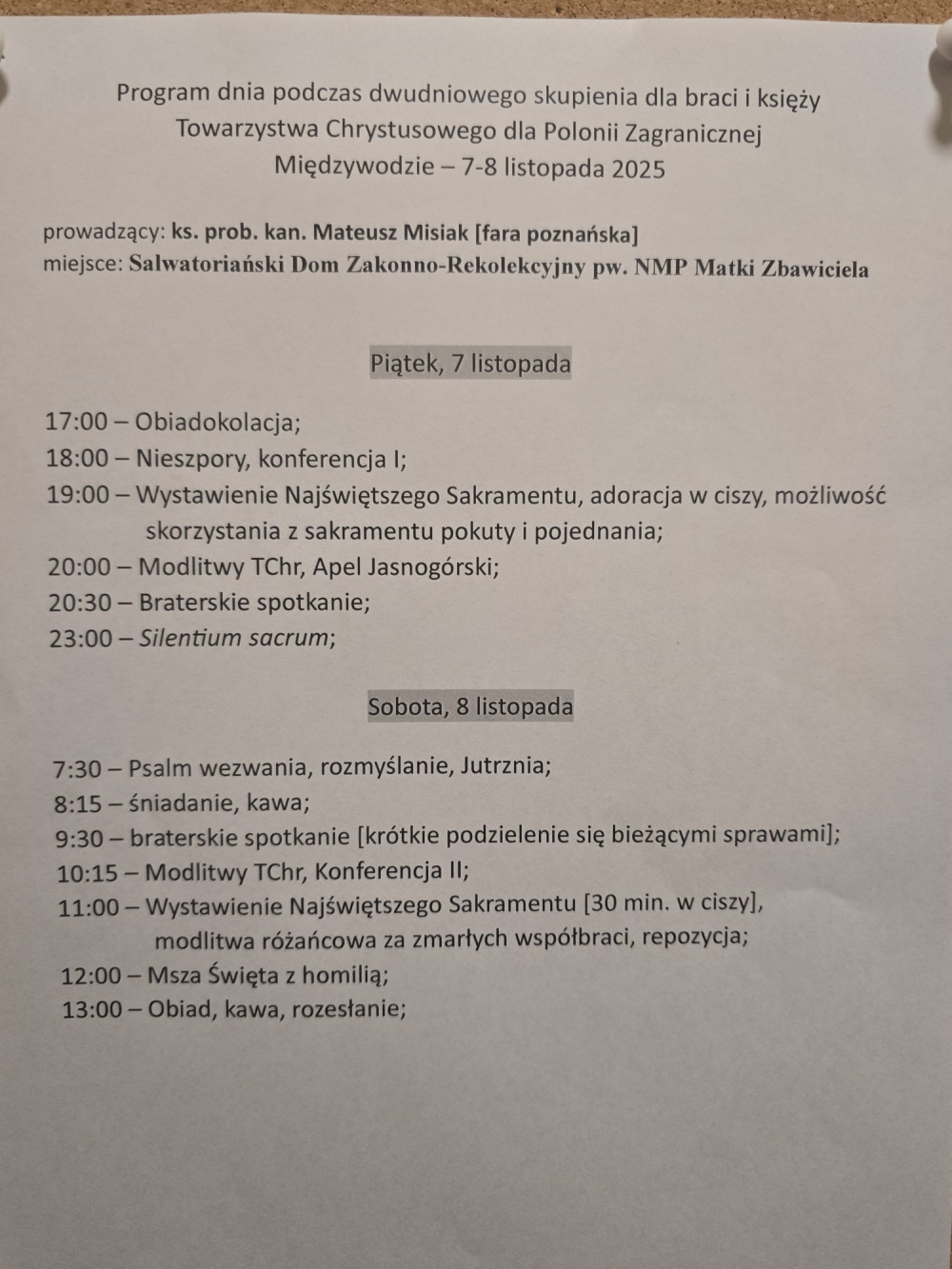 Listopadowe skupienie dla chrystusowców posługujących na Pomorzu Zachodnim przybrało formę dwudniowego zjazdu i odbyło się w dwóch odsłonach w salwatoriańskim ośrodku rekolekcyjnym w Międzywodziu. Pierwszy zjazd miał miejsce 7-8 listopada 2025 r. i przybyło nań około dwudziestu Współbraci z różnych zachodniopomorskich placówek duszpasterskich.