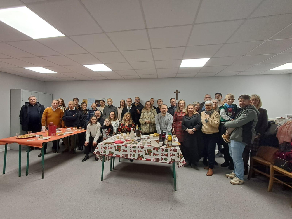 W odpowiedzi na tę oddolną inicjatywę, na zaproszenie Pani Justyny jednej z organizatorek zjazdu, w to niedzielne popołudnie 11 stycznia 2026 r. dołączył do nich, pokonując około 100 km duszpasterz Polaków w diecezji Autun, Chalon sur Saône, Mâcon ks. Ryszard Fyda SChr. O godz. 16.30 w miejscowym kościele ksiądz Ryszard odprawił polsko-francuską Mszę Świętą, której towarzyszył akompaniament organ i trąbki oraz śpiew polskich kolęd. A następnie, w sali parafialnej odbyła się przyjacielska agapa, która rozpoczęła się tak bardzo po polsku i wigilijnie: przełamaniem się opłatkiem i złożeniem sobie życzeń. Potem nastąpił czas bliższego siebie poznawania, ponieważ każdy z przybyłych, wypowiadając kilka słów o sobie, przedstawiał siebie wszystkim obecnym.