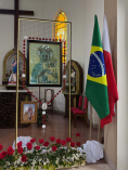 Następnego zaś dnia udałem się do miasta São Bento do Sul, aby przejąć relikwie św. Jana Pawła II, o którą poprosiłem przed laty kard. Stanisława Dziwisza, aby mogły pielgrzymować po wspólnotach polonijnych bądź parafiach terytorialnych (gdy takie życzenie wyrażą miejscowi proboszczowie i duszpasterze). A dwa lata temu byłem zaproszony do odprawienia Mszy Świętej dla Polonii w jednym z kościołów São Bento do Sul, odległego od Porto Alegre o 700 km. I tam pozostawiłem relikwie św. Jana Pawła II pod opieką lidera polonijnego Marco Aurélio Wiliczinskiego, aby mogły zostać uczczone przez Polonusów i innych wiernych miasta i regionu. Czas mijał, a relikwie nie wracały do Porto Alegre, zatem, wybierając się do Massaranduba na festyn, poprosiłem tegoż lidera – przedsiębiorcę zaangażowanego w Izbie handlowej Brazylia-Polska, aby się zorientował, gdzie znajdują się relikwie, ponieważ zakładałem, że zdążyły już odwiedzić wspólnoty katolickie w mieście i regionie São Bento do Sul.