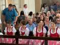 Wróćmy jednak do niedzielnych wydarzeń… Liturgia rozpoczęła się uroczystą procesją do głównego ołtarza. W procesji niesiono duży i już stary obraz Pani Jasnogórskiej oraz , portret św. Jana Pawła II. Te wizerunki poprzedzały grupę dzieci w kolorowych koszulkach (o których już wspomniano powyżej), nadzwyczajnych szafarzy Komunii Świętej oraz ministrantów. Do procesji włączył się również przybyły z miasta São Bento do Sul zespół folkloru polskiego Hercílio Malinowski. (To odległe o 30 km miasto liczy ponad 80 tys. mieszkańców, w tym 25 tys. osób polskiego pochodzenia). I trzeba przyznać szczerze, że jednym z wyróżników tej wspólnoty wydaje się być bardzo głośny i gromki śpiew polskich pieśni religijnych oraz poprawny język polski w śpiewanych pieśniach, odczytywanych czytaniach podczas liturgii słowa i wezwań modlitwy powszechnej. Podziwiałem tę poprawną polszczyznę i można było odczułem, że kościół wypełniony wiernymi śpiewał i modlił się z głębi polskiej duszy, w duchu wielkiego przeżycia duchowego.