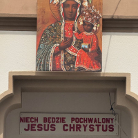 W dużej sali, na frontowej białej ścianie wykonano kolorowymi czerwonymi literami napis: «Witamy serdecznie na XXV POLSKI FESTYN, gdzie wiara i tradycja łączą pokolenia», zaś poniżej zamieszczono również powitanie tej samej treści w języku portugalskim. Warto też odnotować, że przy wejściu do kościoła nad drzwiami widnieje polski napis «Niech będzie pochwalony Jezus Chrystus», a jeden z witraży w prezbiterium ukazuje obraz Pani Jasnogórskiej, a poniżej niego umieszczony jest obraz św. Jana Pawła II.