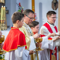 Dzień po święceniach, wieczorem w środę 20 maja 2020 r., nasi neoprezbiterzy – ks. Wojciech Kułach SChr i ks. Krzysztof Zubek SChr sprawowali w kaplicy domu głównego i seminarium swoją prymicyjną Mszę Świętą dla mieszkańców domu.