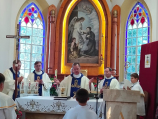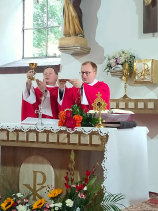 Tydzień później, w wigilię święta Podwyższenia Krzyża Świętego, w kościele filialnym w Łozicach przeżywaliśmy uroczystość odpustową: święto tamtejszej wspólnoty. Była to zarazem siódma stacja z czternastoletniego programu przygotowania do wielkiego Jubileuszu Odkupienia, który będziemy przeżywali w roku 2033 z okazji 2000 lat po śmierci i zmartwychwstaniu Jezusa Chrystusa. Odpustowej Mszy Świętej, na którą przybyli nie tylko mieszkańcy Łozic, przewodniczył i homilię wygłosił ks. Mateusz Socha SChr, nowo ustanowiony duszpasterz akademicki ze szczecińskiego sanktuarium Najświętszego Serca Pana Jezusa. Wygłoszone słowo było zachętą dla wszystkich, by stanąć pod Krzyżem Chrystusa i zaczerpnąć siły do podejmowania własnego codziennego krzyża. Albowiem, jak mówił homilista, codzienne trudy i doświadczenia warto przyjąć jako dar samego Odkupiciela i razem z Nim iść drogą Krzyża, aby mieć również udział w Jego zwycięstwie Chrystusa, udział w Tajemnicy Odkupienia. Po liturgii zwieńczonej nabożeństwem z Litanią do Krzyża Świętego i procesją wokół kościoła oraz uroczystym Te Deum laudamus i błogosławieństwem, wszyscy udali się do świetlicy wiejskiej na Agapę przygotowaną przez Radę Sołecką, Koło Gospodyń Wiejskich i parafian.