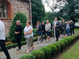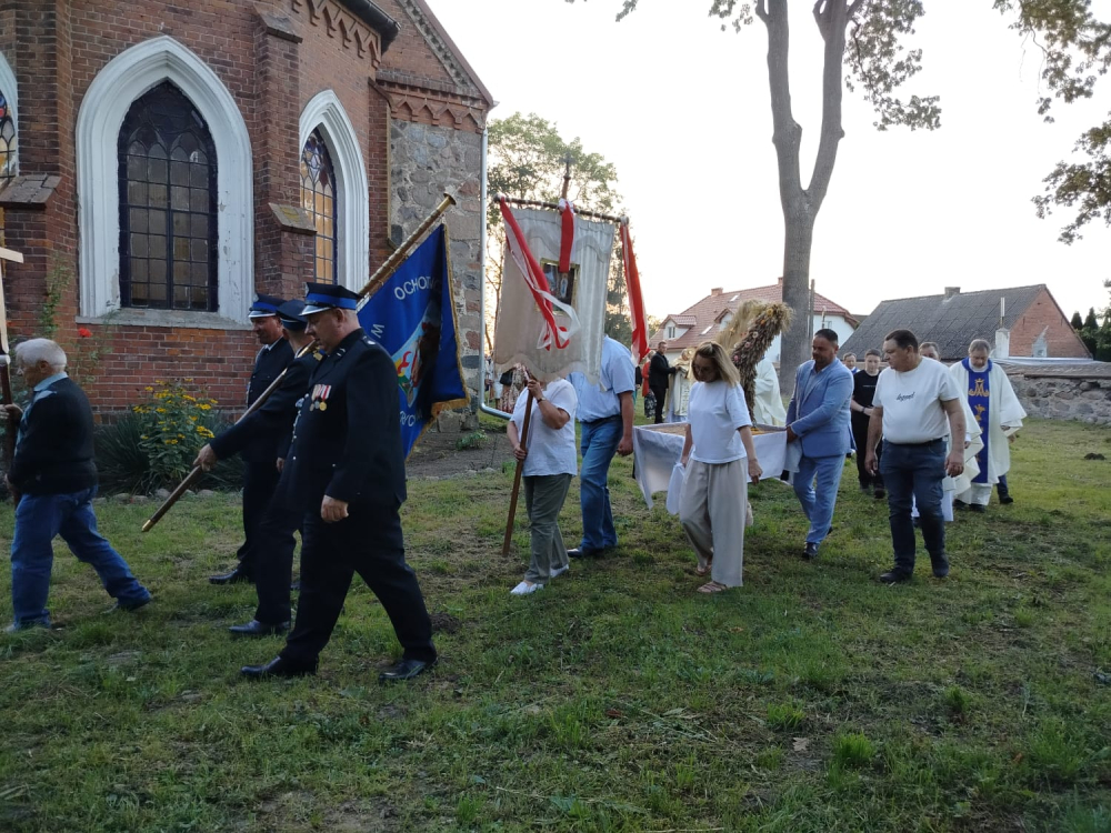 W wygłoszonej homilii Arcybiskup podjął kilka wątków: najpierw odniósł się do potrzeby szacunku wobec Bożych darów – plonów ziemi, następnie do św. Stanisława Kostki Patrona lokalnej społeczności i kościoła, wskazując na jego świętość i znaczenie tej świętości w naszym życiu, a na zakończenie do XVI-wiecznej świątyni w Mielnie, która od pięciu wieków służy modlitwie mieszkających tu ludzi i jest znakiem wiary, obecności Boga i chrześcijaństwa na tych ziemiach. Wskazał przy tym na wielkie znaczenie misji św. Ottona z Bambergu (w ubiegłym, 2024 roku na Pomorzu obchodzono uroczyście Rok Jubileuszowy 900-lecia Misji Pomorskiej Świętego Ottona) oraz na kontekst ostatnich 80 lat życia kościoła katolickiego w tym miejscu i na aktualną troskę o świątynię. Na zakończenie liturgii oddaliśmy cześć św. Stanisławowi Kostce, odmawiając litanię ku jego czci. Potem odbyła się procesja wokół kościoła, odśpiewaliśmy hymn Ciebie Boga wysławiamy, a uroczyste błogosławieństwo zakończyło naszą modlitwę. Po uroczystościach w kościele udaliśmy się do świetlicy wiejskiej na dalsze świętowanie podczas pięknie przygotowanej Agapy, za którą odpowiadała Pani Sołtys, Rada Sołecka, Rada Duszpasterska i parafianie przy wsparciu miejscowych rolników.