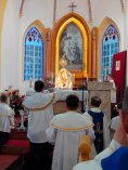 Tydzień później, w wigilię święta Podwyższenia Krzyża Świętego, w kościele filialnym w Łozicach przeżywaliśmy uroczystość odpustową: święto tamtejszej wspólnoty. Była to zarazem siódma stacja z czternastoletniego programu przygotowania do wielkiego Jubileuszu Odkupienia, który będziemy przeżywali w roku 2033 z okazji 2000 lat po śmierci i zmartwychwstaniu Jezusa Chrystusa. Odpustowej Mszy Świętej, na którą przybyli nie tylko mieszkańcy Łozic, przewodniczył i homilię wygłosił ks. Mateusz Socha SChr, nowo ustanowiony duszpasterz akademicki ze szczecińskiego sanktuarium Najświętszego Serca Pana Jezusa. Wygłoszone słowo było zachętą dla wszystkich, by stanąć pod Krzyżem Chrystusa i zaczerpnąć siły do podejmowania własnego codziennego krzyża. Albowiem, jak mówił homilista, codzienne trudy i doświadczenia warto przyjąć jako dar samego Odkupiciela i razem z Nim iść drogą Krzyża, aby mieć również udział w Jego zwycięstwie Chrystusa, udział w Tajemnicy Odkupienia. Po liturgii zwieńczonej nabożeństwem z Litanią do Krzyża Świętego i procesją wokół kościoła oraz uroczystym Te Deum laudamus i błogosławieństwem, wszyscy udali się do świetlicy wiejskiej na Agapę przygotowaną przez Radę Sołecką, Koło Gospodyń Wiejskich i parafian.